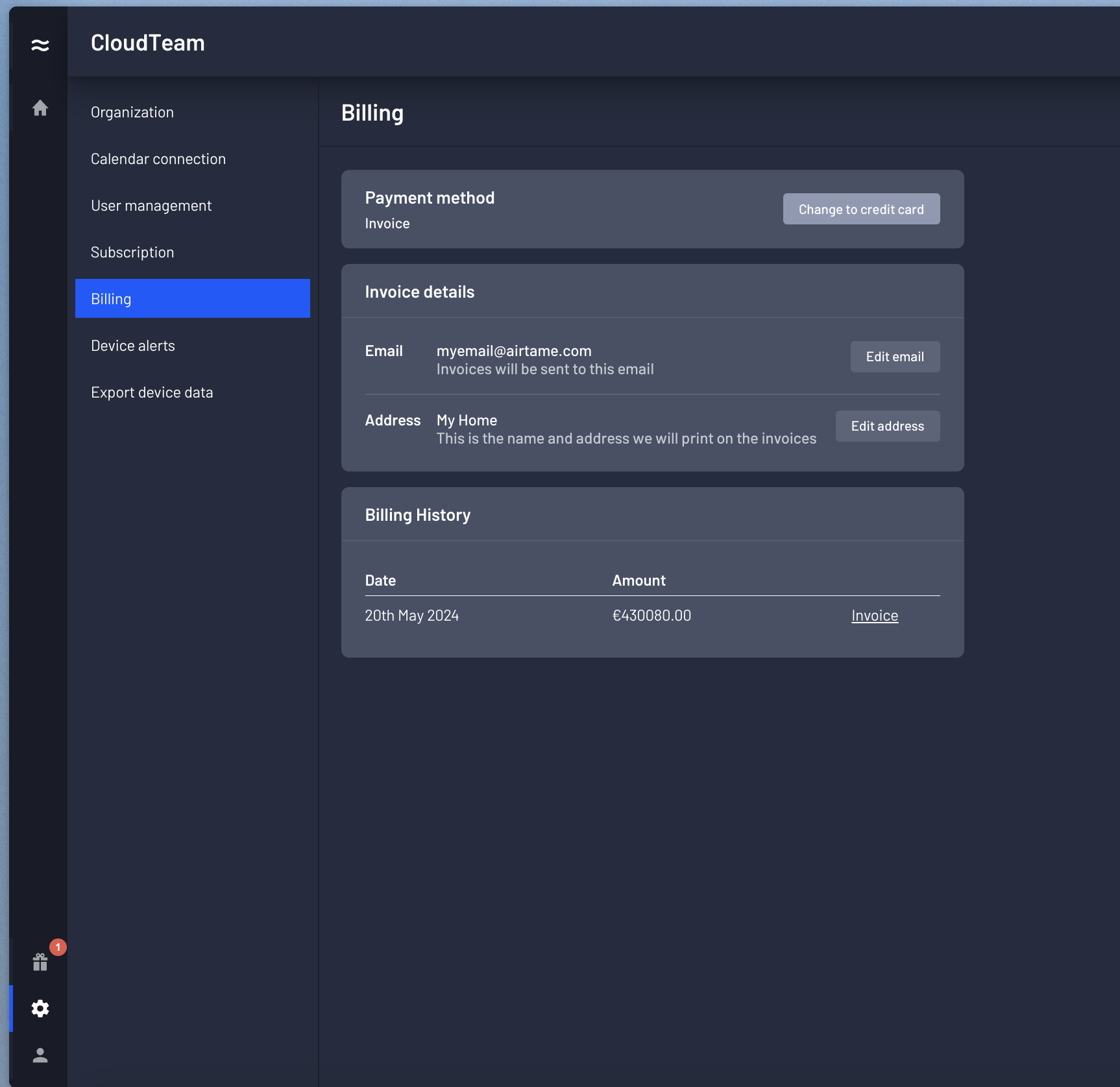 Airtame Cloud Owner and Admins can add a credit card that will be used to renew the Airtame subscription.